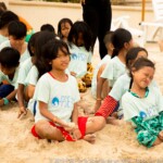 This very special cohesion the monitors created allows them to cohabit for a month of course, but also to make things bigger with the kids. When the weather gets better, the proximity of both Central Sihanoukville and the Paillote of Sihanoukville with the beach gets fully exploited and they enjoy it as much as they can, allowing this way the kids to swim and play in the sea which they barely do in their daily life. Usually the two projects are not going at the same time to the beach because it requires a very tight and complicated logistic to set up. However, starting from the third week, with the help of Laura, the supervisor of both Siem Reap and Sihanoukville projects, the cohesion between monitors and their experience, they can bring to the beach a bit less than three hundred children at the same time.