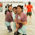 Laura, Marina and Bea, proud of having brought at the same time both of the two Sihanoukville programs to the beach.
