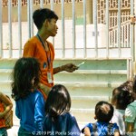 Any kind of routine, such as brushing your teeth or taking a shower, becomes a game that everyone plays everyday in the same order. The first thing they do when they arrive is having breakfast together, and those who already had breakfast at home can freely play until their friends finish. The monitors, singing and dancing, welcome the children for this one day more they will spend at the paillote. Afterwards, some chuas are made, dividing the kids into different teams allowing the Khmers monitors to sign up the kids who came. This has to be done every day so that on Friday they can receive the rice compensation if they have come at least three days out of five.