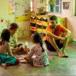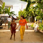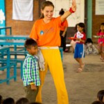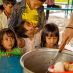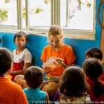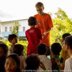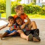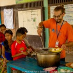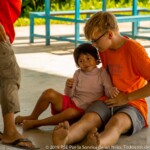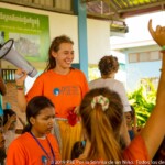 Children here behave like one big family, they all know each other really well and there is no room for shame or anxiety to be all together. That allows some magical moments to happen, such as seeing the smallest children take the micro to sing while everyone’s cheering. In this place where most of the children are really young, the oldest feel a special responsibility in guiding their kroms (teams) and helping their monitors in making the youngest sing or dance. It is also quite common in Smile Village to see one of the kids PSE is taking care of, carrying his little sister or brother with his baby bottle around the day-care center while their parents are busy working. The paillote being located in the middle of the village and fully opened to it, kids come and go the whole day long.