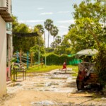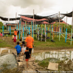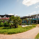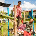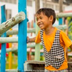 45 minutes away from PSE’s headquarters in Phnom Penh, the pastel colored paillote welcomes between 80 and 110 kids a day, from 2 to 15 years old. Split into two parts, separated by a big blue wood playground, Smile Village’s care center is the heart of the community: under the big roof of the open canteen kids are eating and playing all day long, as well as some of their mums sit to share a talk or watch the kids play, and along the playground, laundry is drying on racks or bushes.