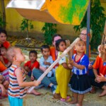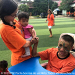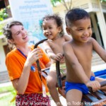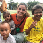 They are splitted among different groups of colors, and two monitors, one European and one Khmer are in charge of each one. That makes the organization easier for the volunteers. In the morning, they do activities all together. “It is true that it is not possible to do very directed games or with many rules, however, we can do many sensory games with them and allow them to be a child… It is an age during which children are like seeds ; they need to be cared for, they need to be given affection and they need to be helped during their growth. How they are help to grow up, how they are educated, are decisive to how they will end up, in one way or another. That’s why it is super important to be with them from they very youngest ages, to respect them, to take care of them, to give them affection… In the camp, we try to teach them to live in society, to tidy up, to clean up, to become autonomous when it comes to doing the most basic things, to share, to respect others… and to offer them some basic goods that some children can probably not find at homes. Even if they are small, it is super important to guide them. As monitors, we are in charge of helping during this short time, to create a comfort zone that will make these sweet and small seeds grow”, Clara, the European coordinator of the program.