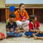 Entre todos los niños que son atendidos por PSE, hay un programa en el que los niños son especialmente vulnerables: los Pensionnaires. De hecho, casi todos viven en PSE todo el año porque son huérfanos o porque sus padres no pueden cuidarlos, por razones económicas o de seguridad. «A veces, comienzan a sentirse solos y deprimidos, lo que puede llevarlos a pensar negativamente y elegir el camino equivocado, que afectaría gravemente su futuro», explica Srey Phim, monitor jemer y pensionnaire durante casi diez años. Por ello, trabajar la inteligencia emocional con ellos es esencial. Dándoles la oportunidad de hablar sobre lo que vivieron, lo que vieron, lo que sintieron, es primordial. Primero, porque necesitan expresar todo esto y no están acostumbrados a tener a alguien que les escuche. Luego, porque les hace preguntarse por qué sucedió esto, por qué reaccionaron de esta manera y, por lo tanto, comenzar a pensar por sí mismos y a aprender a reaccionar adecuadamente ante cualquier situación que les venga.