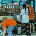 Pour les enfants d’OBK rien n’est ennuyeux : dans le chua devant l’évier où ils se brossent les dents, les enfants sont toujours aussi souriants. Dès qu’ils ont fini, deux moniteurs s’occupent des douches. Les douches sont indépendantes ce qui permet d’en utiliser une pour doucher les enfants et l’autre comme endroit pour se changer, cette organisation facilite grandement le travail des bénévoles. Ensuite, un repas chaud et complet leur est servi avant la siesta (“sieste” en espagnol, utilisé tel quel pendant le programme d’été).