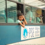 Les enfants qui viennent à Sihanoukville Central sont organisés en deux groupes, celui du matin et celui de l’après-midi. En effet, s’il y a quelques années les écoles publiques fermaient le 31 juillet pour les vacances (ce que fait toujours l’école de PSE), elles ferment désormais le 31 août et, comme il n’y a pas d’école PSE à Sihanoukville – seulement des familles qu’aide PSE à envoyer les enfants à l’école publique, presque tous les enfants vont à l’école la moitié de la journée, même pendant le programme d’été. Quelques uns viennent chaque jour au centre en marchant, mais la plupart prend le bus de PSE qui vient les chercher et les dépose dans les villages dans lesquels ils habitent. Chaque fois qu’un bus quitte PSE pour aller récupérer ou ramener les enfants, un moniteur part avec accompagné d’un membre de la Social Team (équipe sociale). Cela participe certainement beaucoup à la création de la relation spéciale qui existe entre les enfants et leurs moniteurs, étant donné que ces derniers savent exactement d’où viennent les enfants, dans quelles conditions ils vivent.