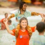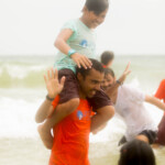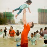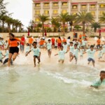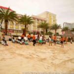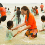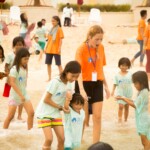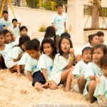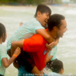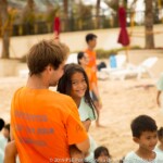 Cette cohésion spéciale que les moniteurs ont créé leur permet d’habiter tous ensemble durant un mois, mais également de voir les choses en grand avec les enfants. Quand le temps s’améliore, on profite pleinement et autant que possible de la proximité des deux programmes de Sihanoukville – Central et Paillote – avec la plage, permettant ainsi aux enfants de se baigner et de jouer dans la mer, chose qu’ils font rarement au quotidien. Normalement, les deux programmes ne vont pas à la plage en même temps car cela requiert une logistique minutieuse et compliquée. Cependant, à partir de la troisième semaine, grâce à l’aide de Laura – superviseur des programmes de Siem Reap et Sihanoukville, la cohésion entre moniteurs et l’expérience acquise, ils peuvent emmener à la plage un peu moins de trois cents enfants en même temps.