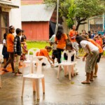 De 3 à 17 ans, tous les enfants participent de la même façon aux activités et ateliers imaginés par les moniteurs Khmers et Européens. En effet, ils ne travaillent pas seulement main dans la main comme dans tous les autres projets, ils vivent également ensemble ce qui leur permet de bâtir de solides amitiés et une profonde confiance. Tous les soirs, ils cuisinent le dîner ensemble – dîner qu’ils choisissent à l’avance afin que la logistique puisse acheter les ingrédients nécessaires au marché, et les moniteurs espagnols ont fait goûter aux Khmers la tortilla de patatas par exemple. Ici, les moniteurs Khmers et Européens sont en permanence en train de s’inspirer et d’apprendre les uns des autres, et ils forment une grande équipe soudée. Et c’est encore plus évident lorsqu’il se met à pleuvoir, tous oublient tout simplement la difficulté supplémentaire et, comme dit Bea, très fière de ses moniteurs, “ils continuent juste à sourire, à jouer, à éduquer et à donner de l’amour aux enfants.”
