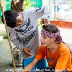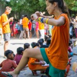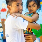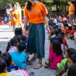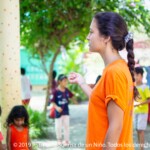 Ce sont cent cinquante visages souriants qui attendent les moniteurs chaque jour à Takh Mao. Les enfants arrivent peu à peu, car certains qui habitent dans les environs viennent à pied, lorsque d’autres arrivent avec le van qui va les chercher dans leur village. Ainsi, les enfants arrivent jusqu’à environ 8h30 du matin. Pendant ce temps, ceux qui sont déjà sur place prennent leurs douches, leur petit déjeuner et commencent à jouer.