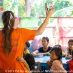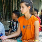 Sans aucun doute, la plus grande réussite des moniteurs au terme de ces quatre semaines est la constance instaurée dans la lecture chez les enfants. Chaque jour, ils passent un peu de temps à lire, soit individuellement et chacun d’eux prend un livre, particulièrement les plus âgés, soit en groupe avec l’aide d’un moniteur khmer qui lit l’histoire aux plus jeunes. La lecture est devenue une telle habitude que lorsque l’organisation de la journée ne permet pas d’y accorder du temps ce sont les enfants eux-mêmes qui la demandent. L’atmosphère qui se crée à la vue de tous ces petits groupes entourés de livres colorés et remplis de milliers d’histoires fantastiques, est particulièrement agréable.