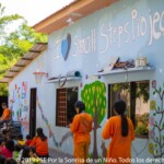 La porte brune de la paillote est une entrée directe sur une scène de joie et d’affection. Où que se porte le regard, ce n’est que vitalité et énergie à l’image des enfants et des moniteurs, des murs colorés et de l’importante végétation présente.