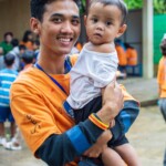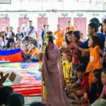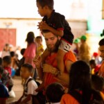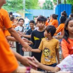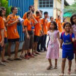 En entrant sur le campus Central on est immédiatement atteint par la joie communicative et le dynamisme des moniteurs, les enfants arrivent à partir de 6h du matin et pendant plus d’une heure ils sont accueillis par des dizaines de moniteurs en T-shirts orange qui forment un couloir de chants et de danses permettant ainsi aux enfants de commencer la journée de la meilleure des façons. Et, tous les matins, les pick ups et touktouks remplis de moniteurs, de sacs de riz et de casseroles de petit déjeuner, prennent ce même couloir dans l’autre sens en direction des nombreuses paillotes.