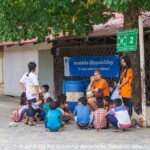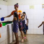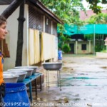 L’objectif premier du Programme de Continuité Scolaire est de divertir les enfants, mais de façon éducative.  Aussi, on les encourage à acquérir de bonnes habitudes en terme d’hygiène et de santé et la première étape pour le millier d’enfants qui passe les portes bleues du Central PSE, est de passer à la douche et de se brosser les dents. Il faut voir ces rangées de petits garçons et filles s’enroulant dans des kramas (foulards traditionnels khmers) avant de se faire renverser des buckets (petites casseroles en plastique) d’eau dessus et de se frotter consciencieusement corps, cheveux et dents.